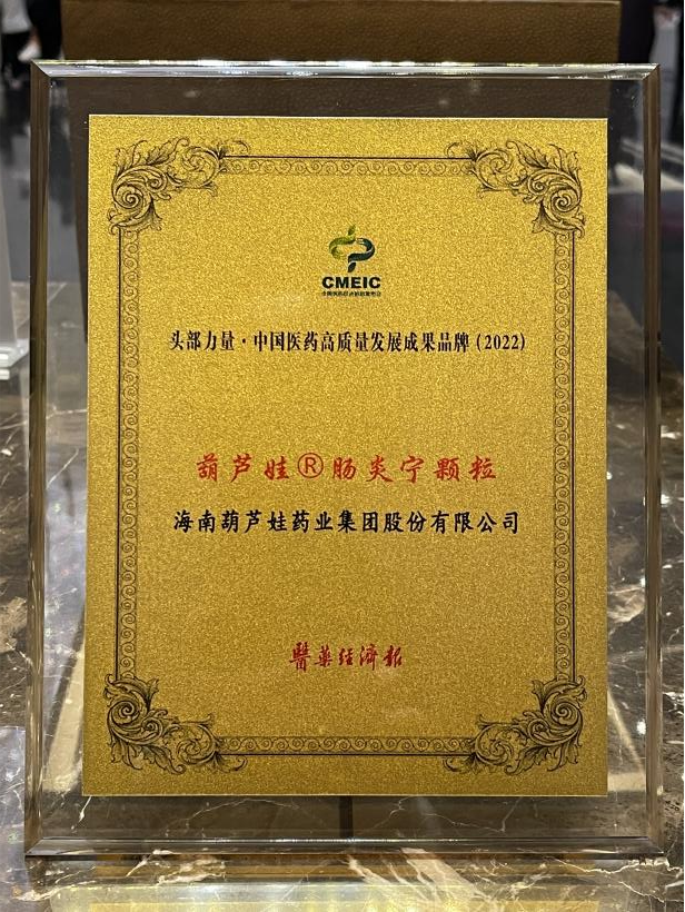 在本次发布会上,公司重点产品AG刮刮卡牌肠炎宁颗粒同时荣膺“头部力量·中国医药高质量发展成果品牌(2022)”。AG刮刮卡牌肠炎宁颗粒(2g),传承经典名方,临床广泛用于成人及儿童急慢性胃肠炎、腹泻等疾病的治疗,由于其杰出的临床价值,被纳入国家中医药管理局相关专家项目组制定的《中成药治疗小儿腹泻病临床应用指南》。